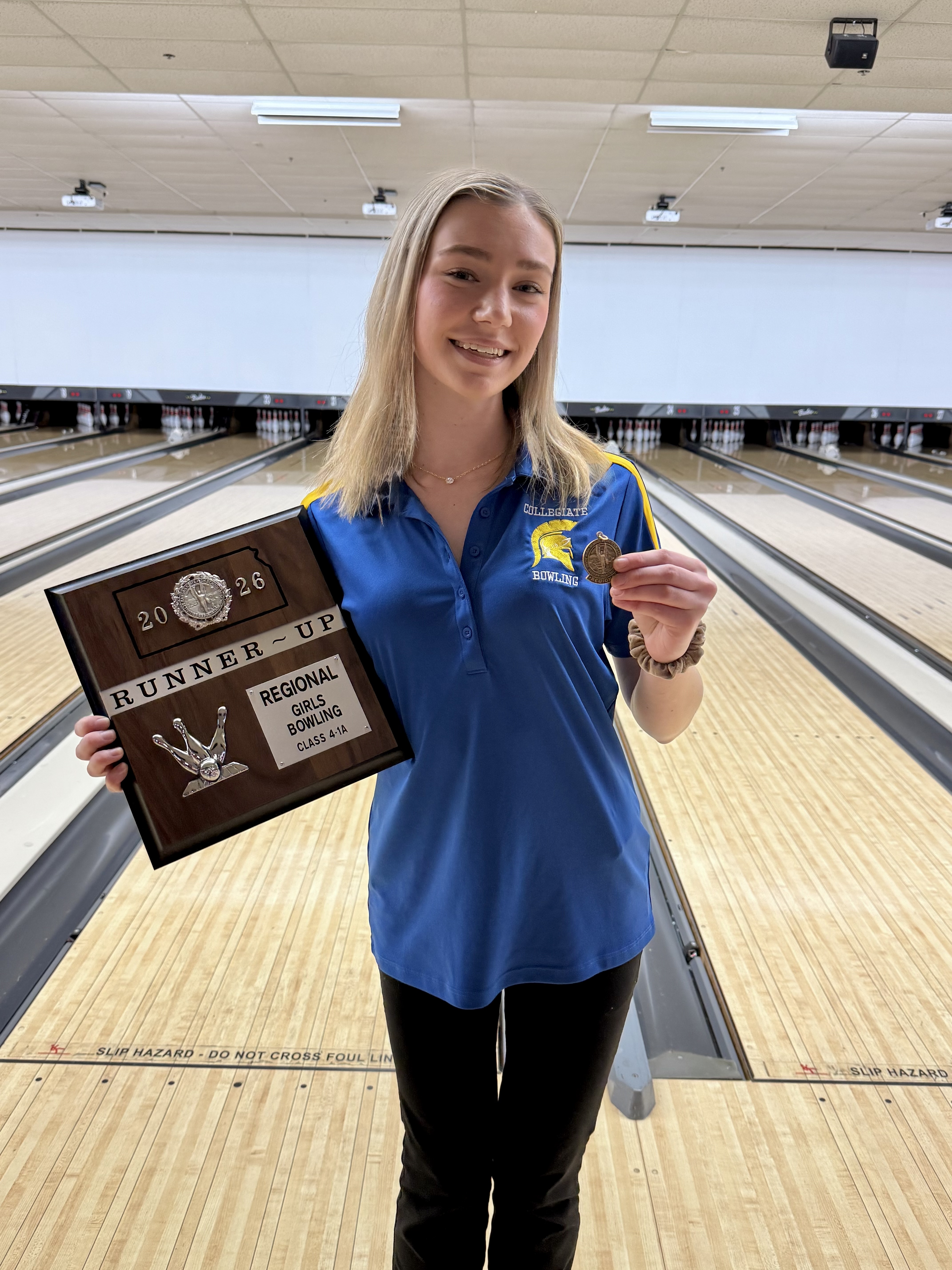 Caroline participated in four sports during high school. She played varsity tennis for three years, joined the golf team her junior year, and took part in Color Guard as a senior. Her primary athletic focus was bowling, where she averaged 165 pins in her senior year and set the school’s women’s all-time high game and series records. She qualified for the state tournament twice, placing 10th as a sophomore and 20th as a senior. As a four-year varsity bowler and team captain her senior year, Caroline led her team to a school-best 6th place finish at state.
